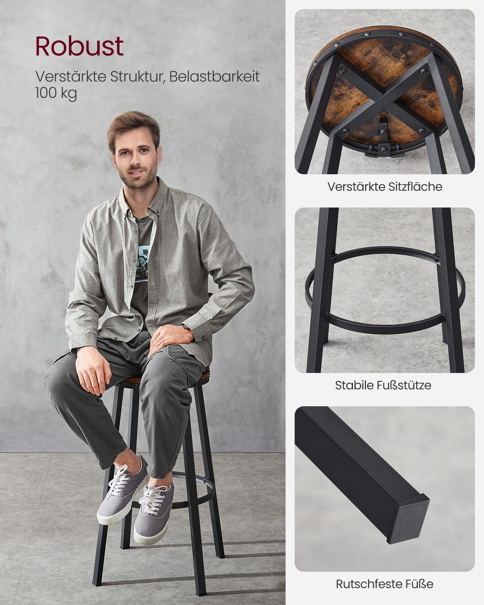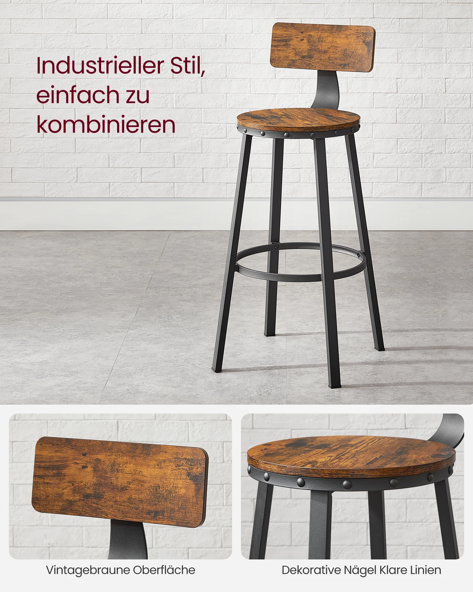 VASAGLE Barhocker, industriell, 4 Stück, Küchenstühle, mit Rückenlehne, Stahlrahmen, 73 cm hoher Sitz, einfache Montage - TopDealBox