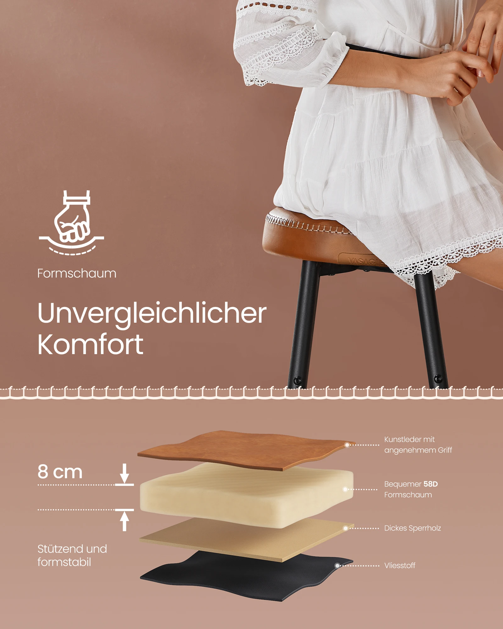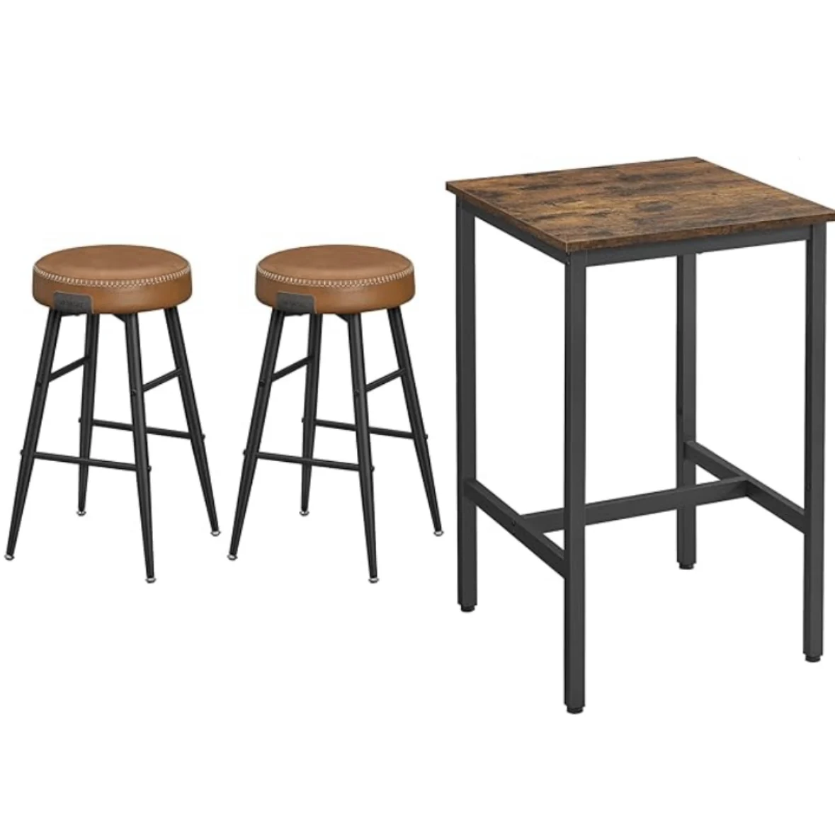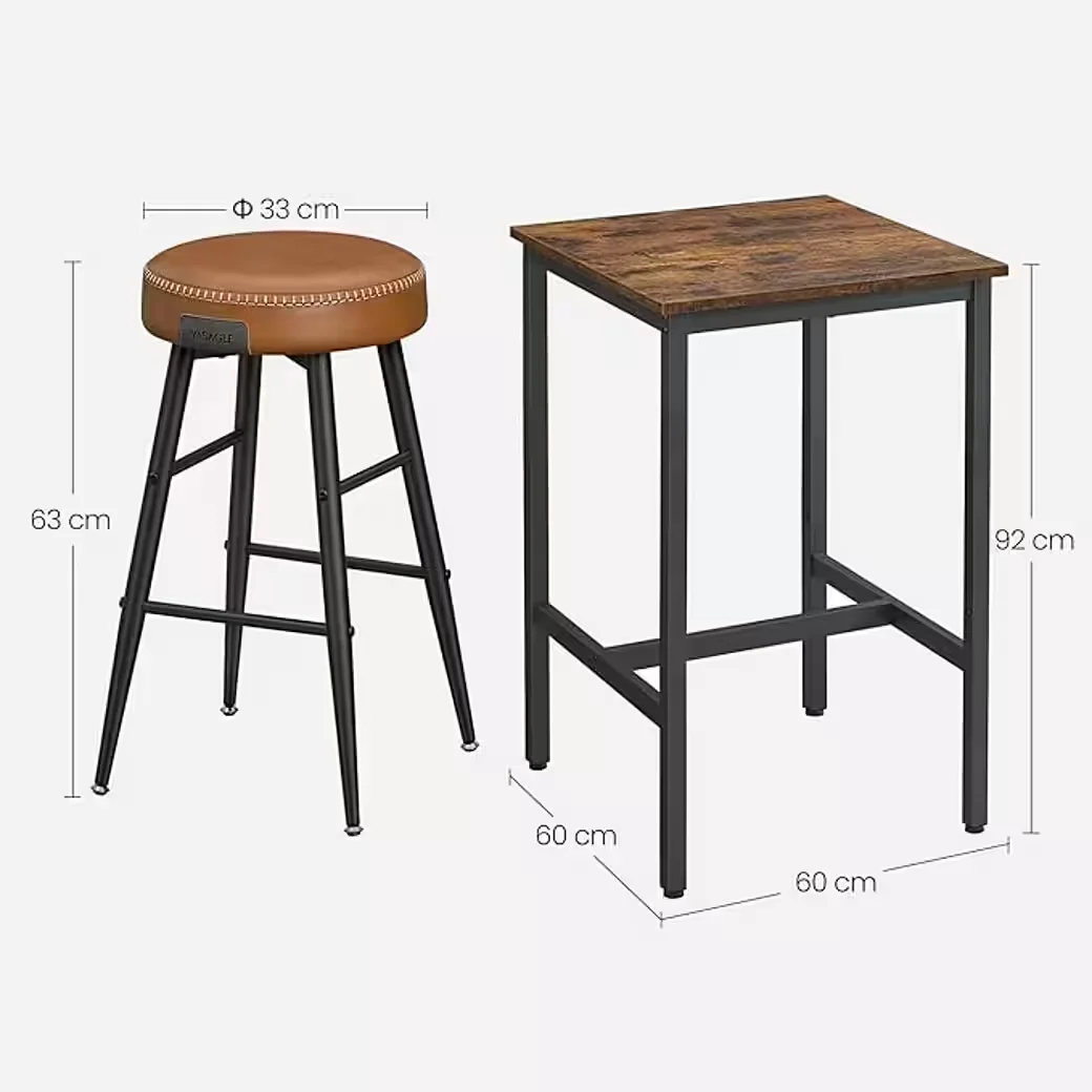 VASAGLE Bartisch mit 2 Barstühlen Set, Stehtisch, Küchentisch hoch, Barhocker, Küchenstuhl mit Kunstleder-Oberfläche - TopDealBox