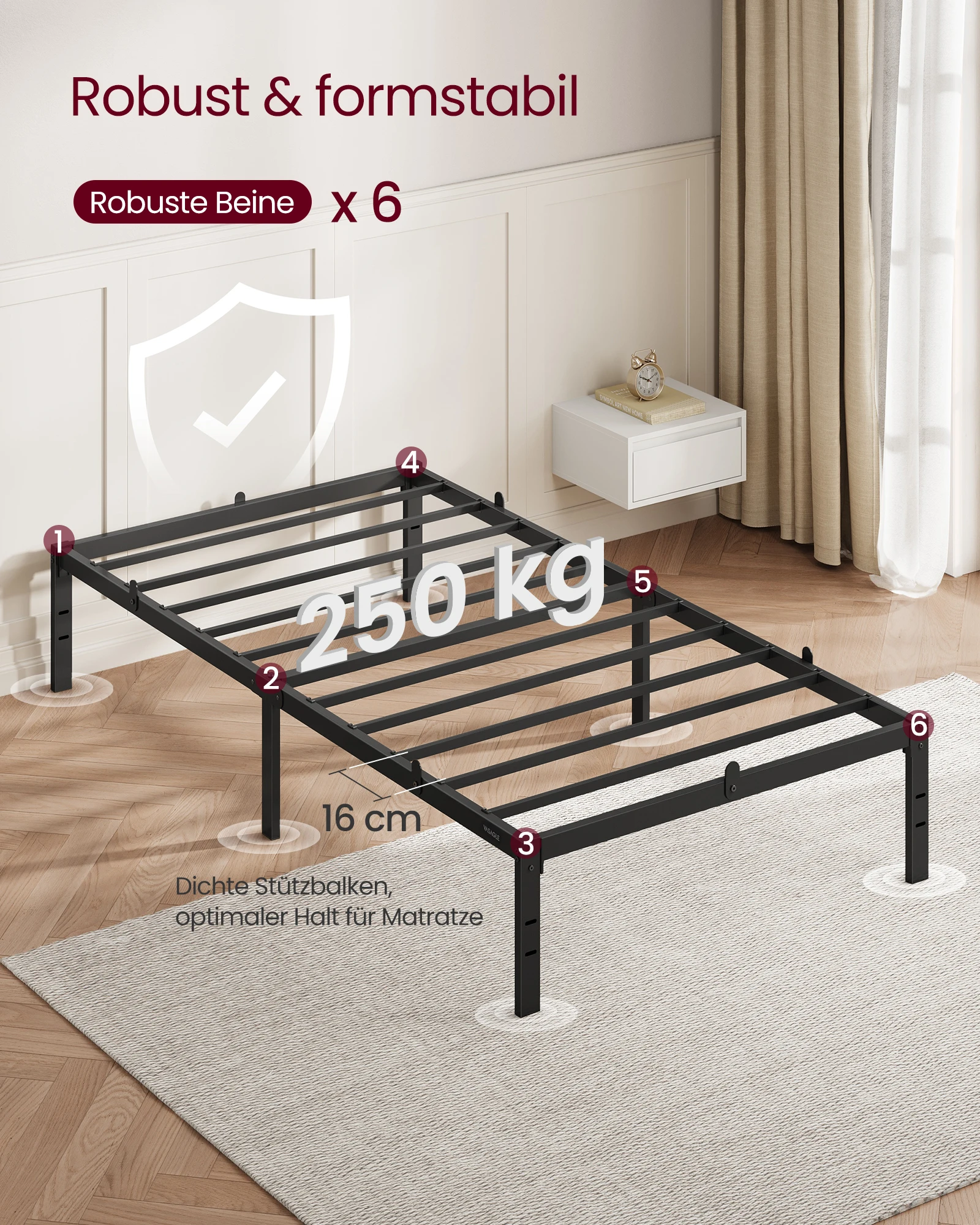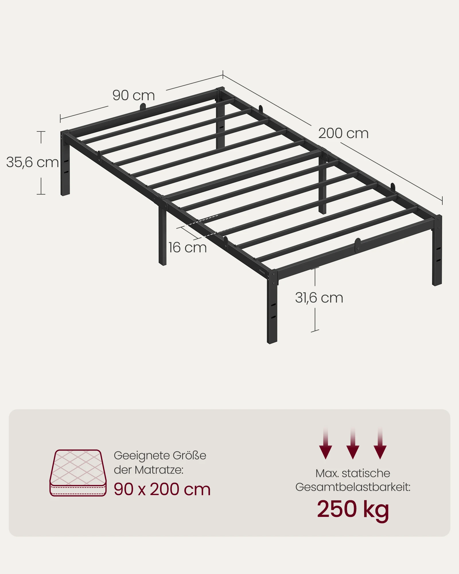 VASAGLE Bett, Metallbett, Bettrahmen, Unterbettaufbewahrung, modern, Gästebett, einfacher Aufbau - TopDealBox