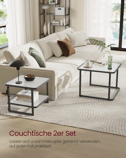 VASAGLE Couchtisch, 2er-Set mit LED-Beleuchtung, quadratischer Beistelltisch
