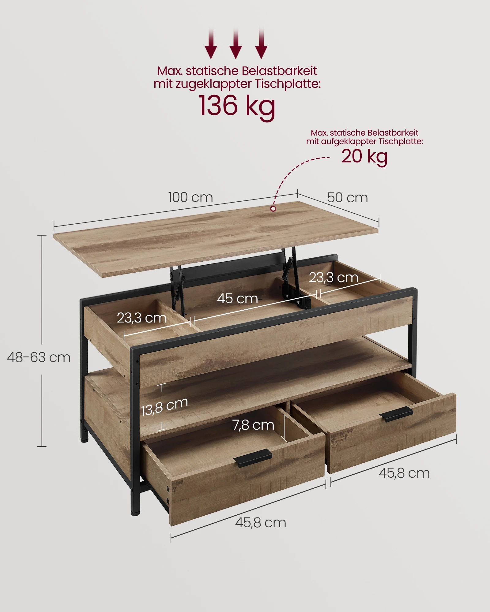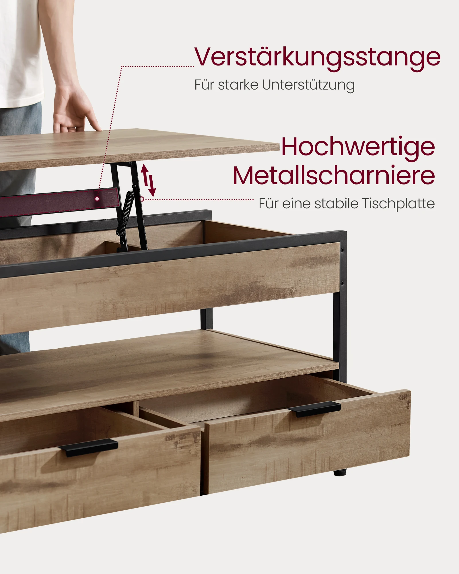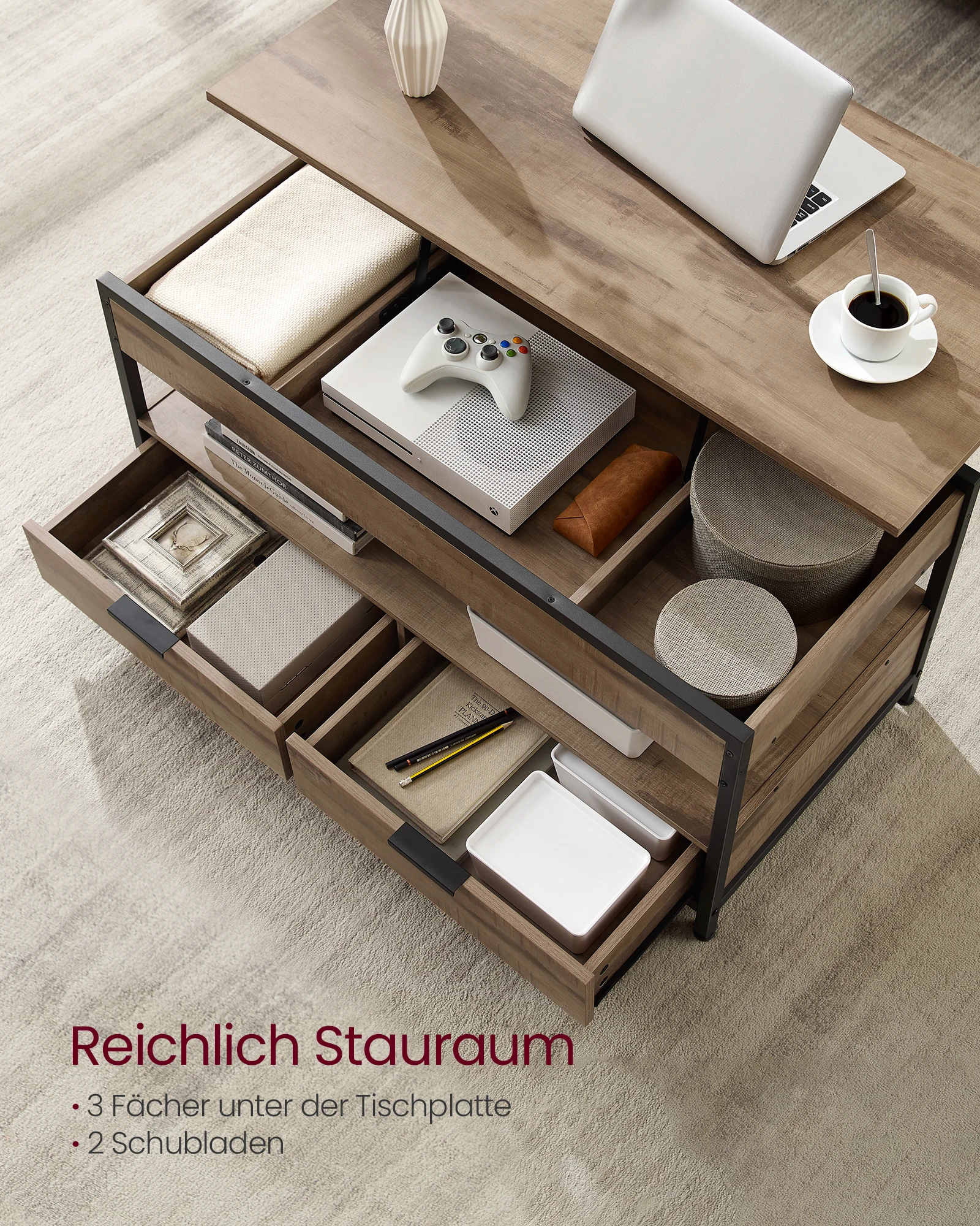 ♡SchnellansichtVASAGLE Couchtisch höhenverstellbar, Wohnzimmertisch, 2 Schubladen, versteckte Fächer, Kaffeetisch, offener Stauraum67.91 EUREUR 119.93Heiß