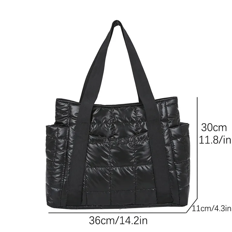 Vento Marea Space Gepolsterte Damen-Umhängetaschen für den Winter 2021, große Kapazität, schwarze Handtaschen, Designer-Nylon-Baumwolle, warme Tragetasche, solide - TopDealBox