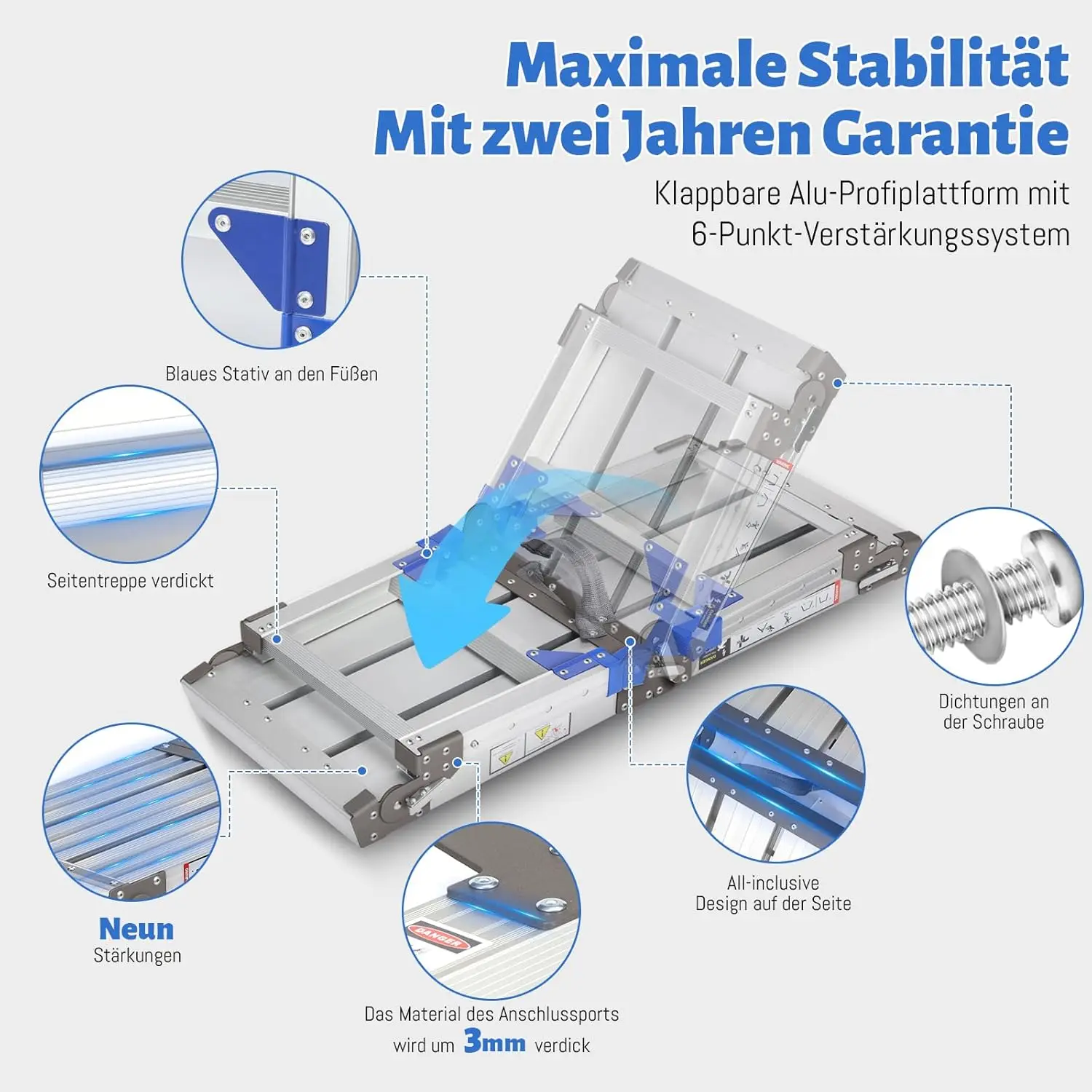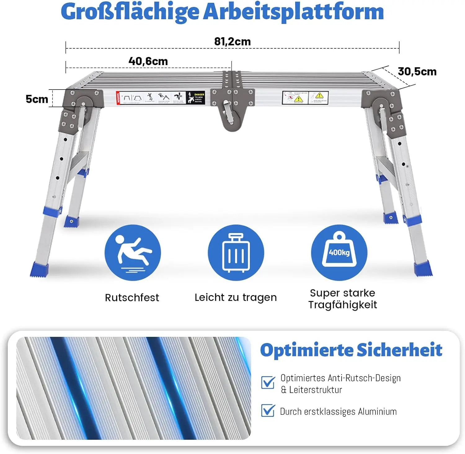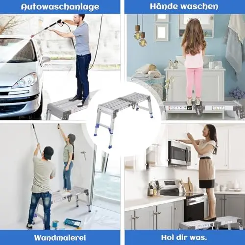 Verbesserte Aluminium-Arbeitsplattform, klappbar bis 362 kg, Arbeitsbühne, verstellbare Aluminium-Stufenleiter, Plattformleiter mit - TopDealBox