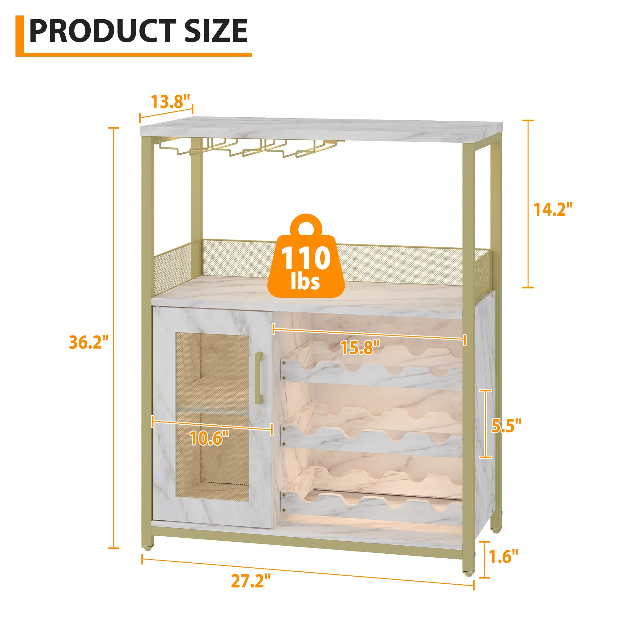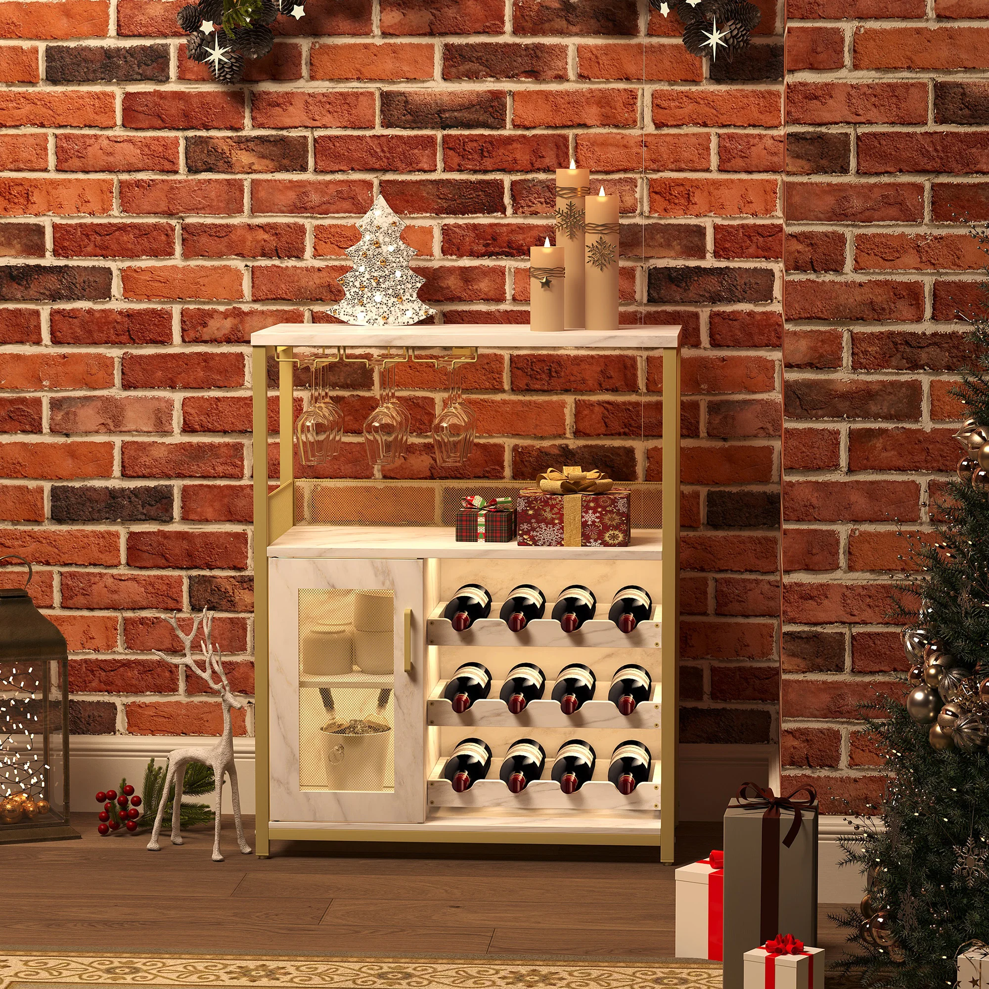 Weinregal, mobiler Barschrank mit 3-stufigem Weinglashalter, Flaschenhalter, verstellbaren Einlegeböden,Fach mit LED-Beleuchtung - TopDealBox