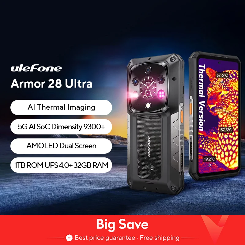 【Weltpremiere】 Ulefone Armor 28 Ultra 5G AI Wärmebildkamera Robustes Telefon 1TB ROM 32GB RAM Android Smartphone AMOLED 6,67" 120Hz 10600mAh Mobiltelefon Sony® IMX989 64MP Nachtkamera - TopDealBox