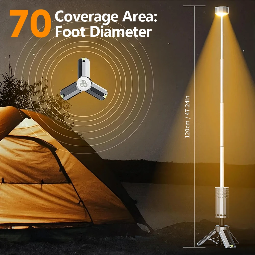 Wiederaufladbare Campingleuchte, 10.000 mAh, teleskopische Campingleuchte, magnetisch, tragbar, zusammenklappbar, Tischlaterne, wasserdicht, Notfall - TopDealBox