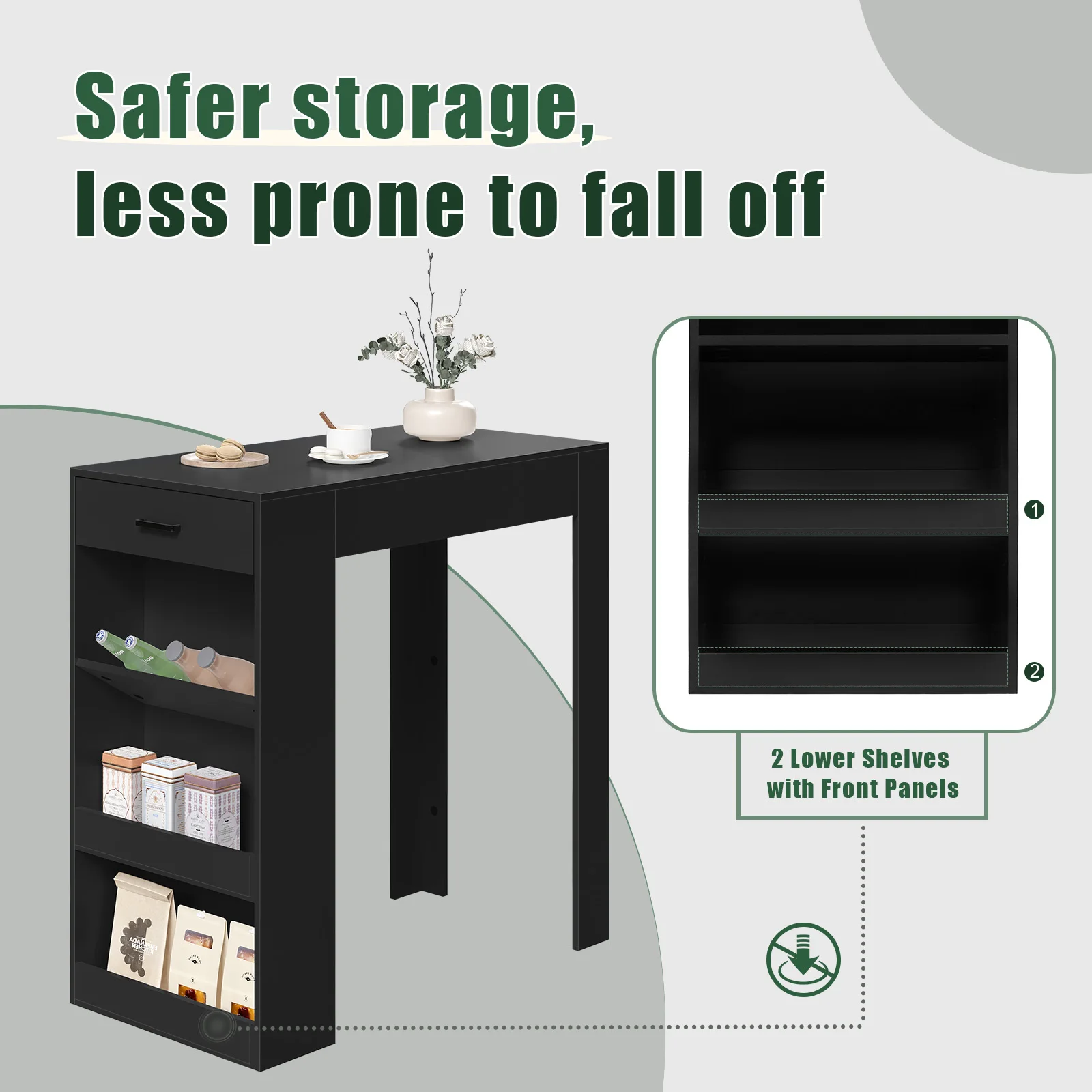 WOLTU Bartisch, 100 x 100 x 50 cm, Bistrotisch mit 1 Schublade, 3 Regalen, Weinregal, Küchentisch für Wohnzimmer, Esszimmer, Heimdekoration - TopDealBox