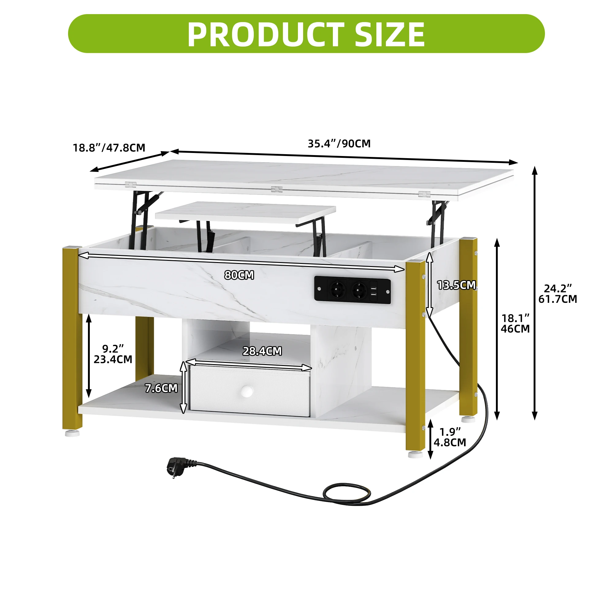 ♡SchnellansichtYITAHOME Weiß/Grauer Hubtisch – höhenverstellbar mit 2 Stauraumstufen und verstecktem LED-Fach61.99 EUREUR 124.96Heiß
