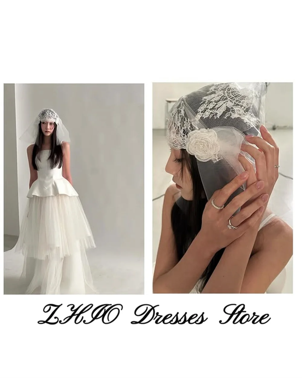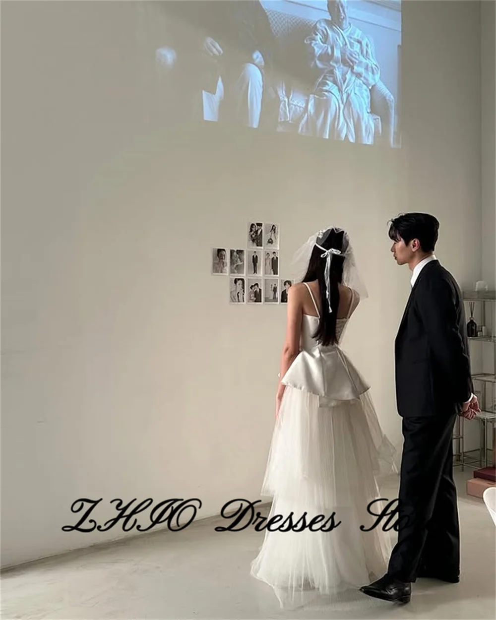 ZHIO Einfache Träger, Falten, A-Linie, Tüll, Elfenbein, Brautkleider, Fotoshooting, koreanische Brautkleider, Korsett/Reißverschluss hinten, maßgeschneidert, soi - TopDealBox